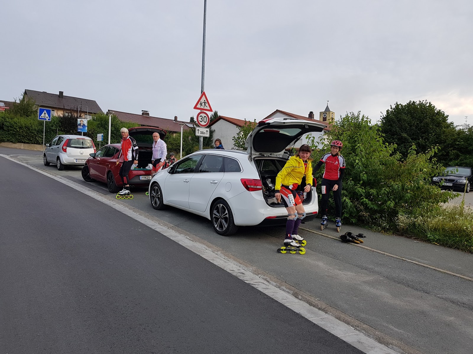 Vor dem Rennen... Freunde treffen auf der Messe, am Vorabend zusammen speisen, umkleiden auf der Wiese vor dem Kanzleramt, gemeinsames Warmrollen.