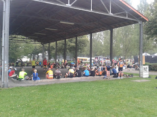 Zur Mittagspause in Koblenz gab es wieder Pasta mit vegetarischer Souce - Ruck Zuck waren alle versorgt! Sehr lecker war auch der Kuchen am AWO-Stand. Besonders wichtig bei der zunehmenden Hitze waren die Getränke, erstmals bildete sich sogar eine Schlange am Wasserstand.